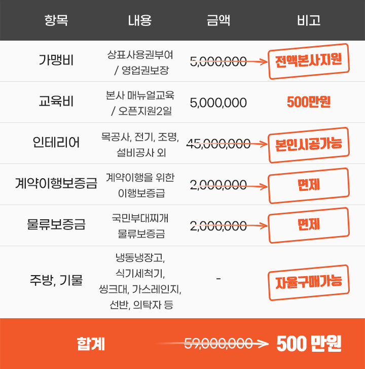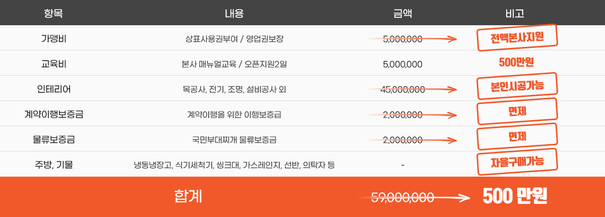 * 본 창업 비용은 이해를 돕기위한 예상비용으로 현장실측 후 정확한 비용이 산출됩니다.
