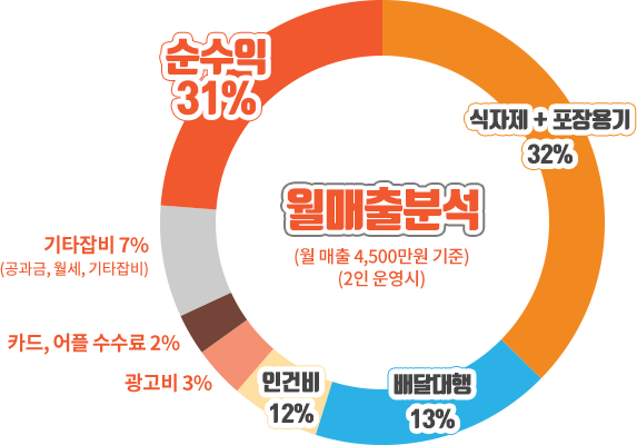 ※ 20평이상 매장 + 배달 평균분석 (상권 입지에 따라 상이함)